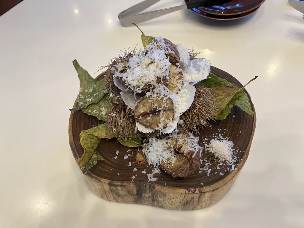 The chestnut harvest season is September and October. But you can get chestnut sweets and dishes year-round.