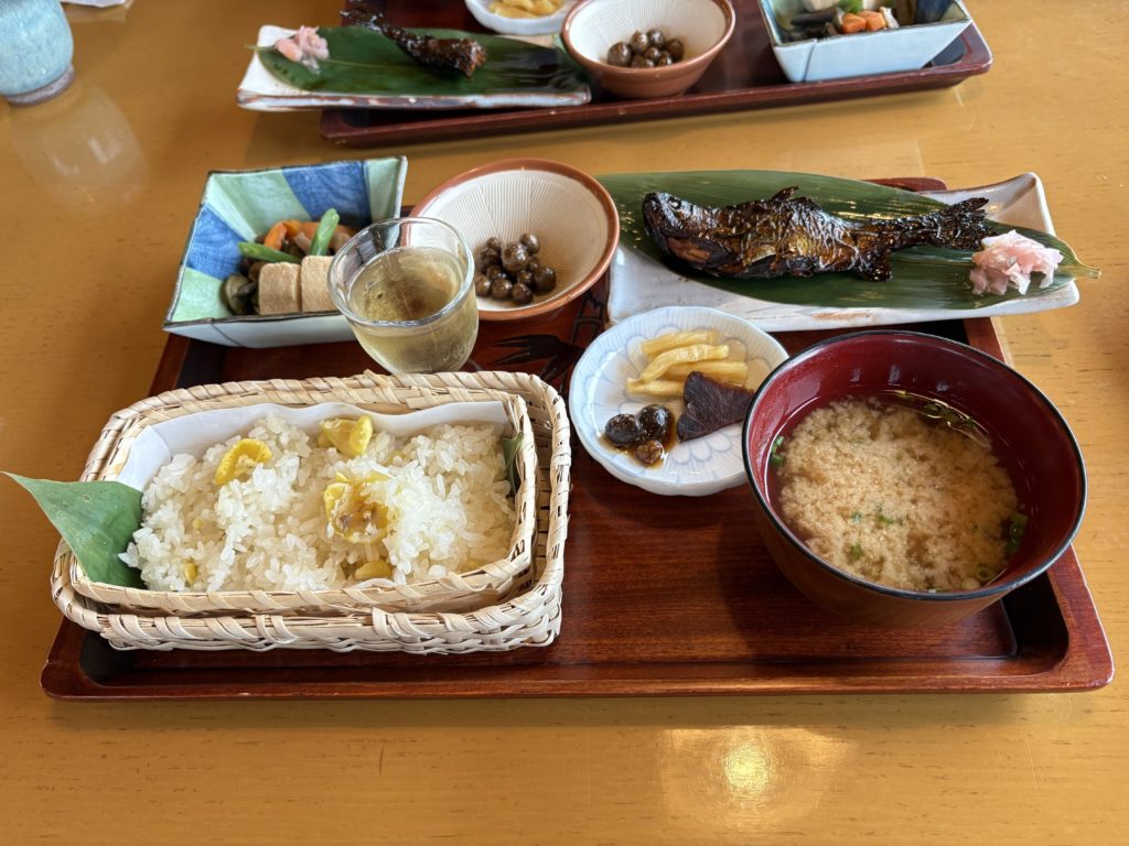 Next let’s go to a Japanese food restaurant. Here you can taste “Kuriokowa”. It is steamed rice with chestnuts. You can taste the moderate sweetness and deliciousness of chestnuts. You can get many sizes of “kuriokowa” boxes to take out, and you can also eat them as part of a set of dishes at restaurants.